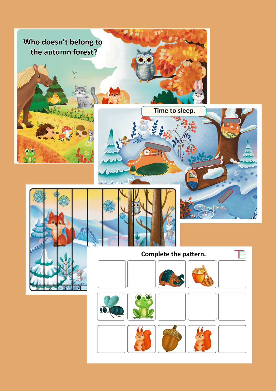 A playful mix of winter-themed activities for kids aged 3–7 — hibernation, counting, handwriting, grammar, puzzles, and a fairy-tale play! Perfect for learning through fun at home or in class.